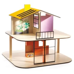 Een mooi houten babyboekje in zachte kleuren in de vorm van een poesje. Op de buik van het poesje zijn met rood elastiek 4 bladzijden bevestigd met elk een ander motief. Wanneer je de bladzijden omdraait zie je bij welk dier het motiefje past!