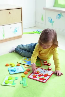 A, B, C, D, E, F, G … Met deze kleurrijke inlegpuzzel leren kinderen al spelend het alfabet kennen. Dankzij de grote, gemakkelijk te grijpen knoppen kunnen de puzzelstukken goed in het puzzelbord worden gelegd.