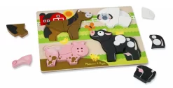 Peuters hebben genoeg te ontdekken met de First Play Wooden Touch and Feel Peekaboo dieren puzzel van Melissa en Doug. De vriendelijke kat, eend, konijn en puppy hebben elk een harige of pluizige textuur om te ontdekken. Elk diertje kan rechtop staan om te fantaseren en passen in de houten sleuf. Een spiegel in het midden van de puzzel houdt je baby bezig! Leeftijd 12 maanden +