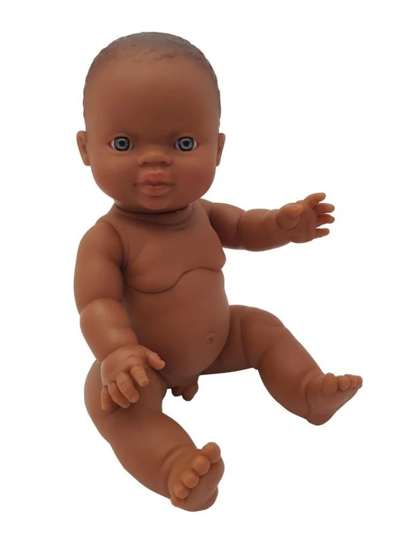 Deze donkere babypop is onderdeel van de Gordi serie van het Spaanse merk Paola Reina. Met zijn mollige lijfje en bruine oogjes blijf je hem knuffelen. Bijpassende kleertjes zijn te koop op de website.