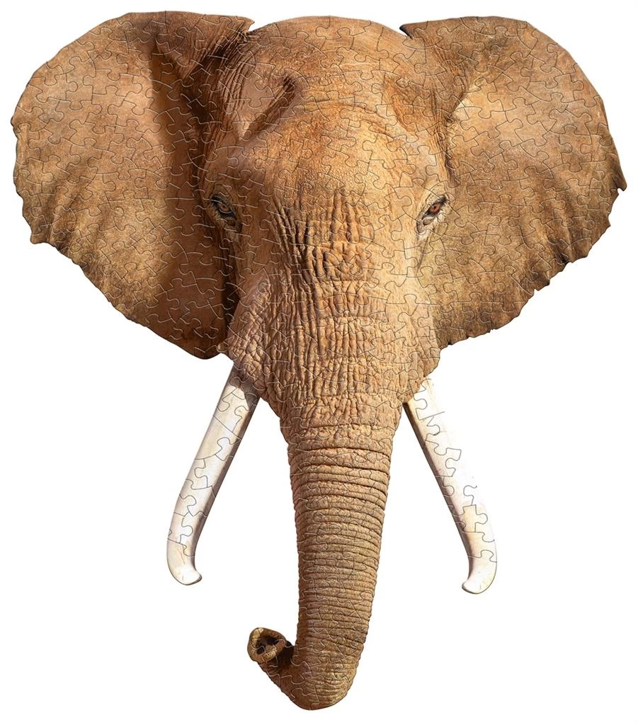 Deze puzzel in de vorm van een Olifantenkop is zo realistisch dat het lijkt alsof er echt een olifant in je woonkamer staat!